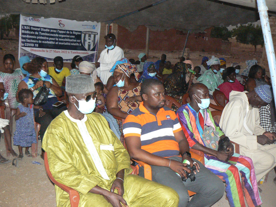 Selon Madame Coly Mabinta Sambou, chargée de l’éducation, de l’Information pour la santé au niveau de la région médicale de Tambacounda « les initiatives locales doivent être accompagnées. L’activité a porté sur la sensibilisation par rapport aux facteurs de morbidité, de mortalité, surtout pour les personnes âgées. La cible jeune, qui est aussi concernée par la Covid-19, sensibilise, accompagne la cible adulte qui, très souvent, vit avec des facteurs de morbidité. Cela ne fait que renforcer les activités de communication que nous faisons aux différents niveaux ».