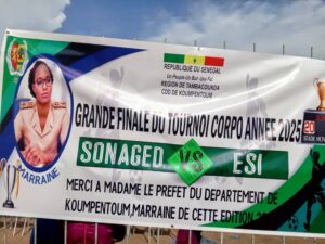 Koumpentoum a joué sa finale corpo qui a opposé la Société Nationale de Gestion Intégrée des Déchets Solides (SONAGED) et l’Escadron de Surveillance et d’Intervention de la Gendarmerie (ESIG). Après un match âprement disputé, la Sonaged n’a pas fait de cadeau à son adversaire du jour. Le score est de 2 buts à 0 pour le champion départemental de l’édition 2025.